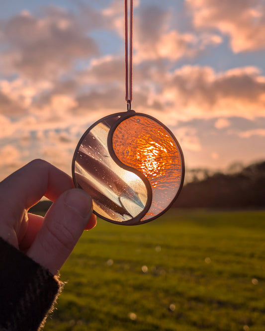 Yin Yang Bauble, Pink Opal - Stained Glass Suncatcher